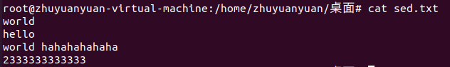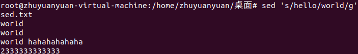 eg:将sed.txt中的hello替换成world(加g是全局替换,不加只替换第一个)