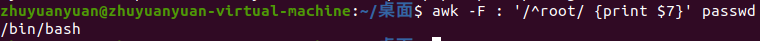 eg:搜索passwd文件以root开头的所有文件行(正则匹配),并输出改行的第7列