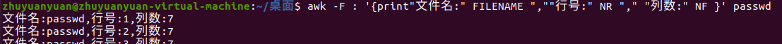 eg:统计passwd的文件名,每行的行号,每行的列数