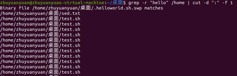 5.用shell查找当前文件夹/home下的所有文本内容中包含“hello”的文件名称