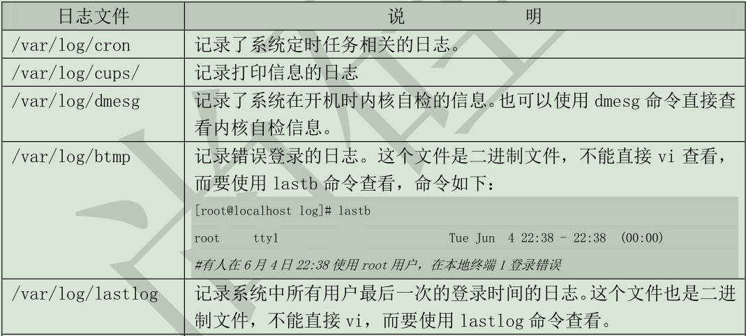 #mail,authpriv,cron 的日志不记录在/var/log/messages 日志文件中,因为它们都有自己的日志文件。