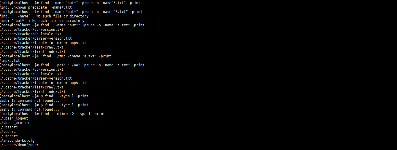 4>在当前目录及子目录中,查找不是out开头的txt文