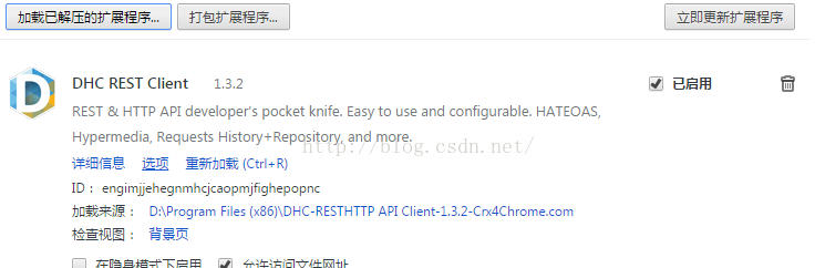 DHC是一款可以帮助用户使用chrome插件模拟HTTP客户端发送测试数据到服务器的谷歌浏览器插件,在chrome中安装了DHC插件以后,就可在服务器端代码初步完成的时候,使用DHC进行数据测试,以便更早地了解到程序的BUG和需求。DHC插件的使用方式也非常简单,只需要输入服务器端的地址,以及发送的方式和数据内容,就可以向服务器端发送指定的数据,并获取服务器端的返回值。
