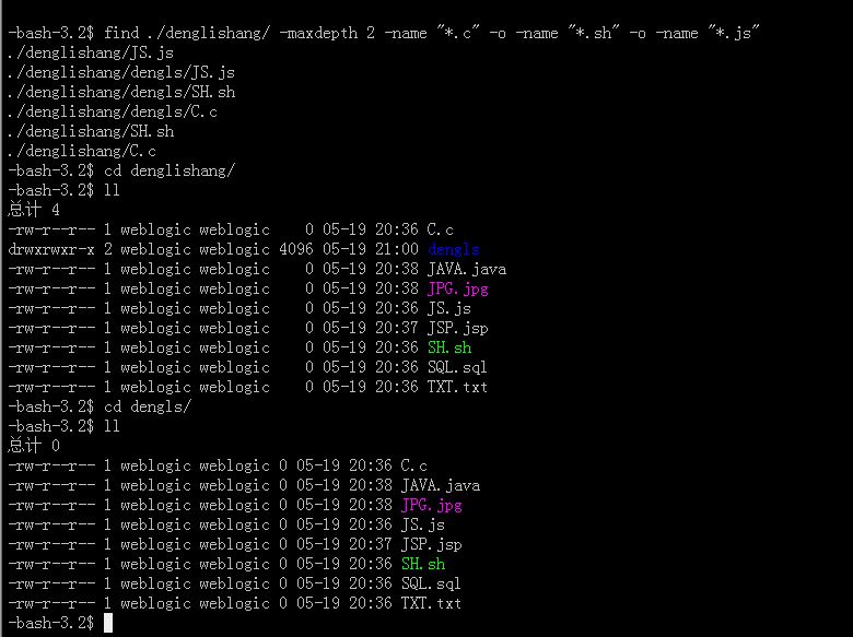 -bash-3.2# find ./denglishang/ -name "*.c" -o -name "*.sh" -o -name "*.js"