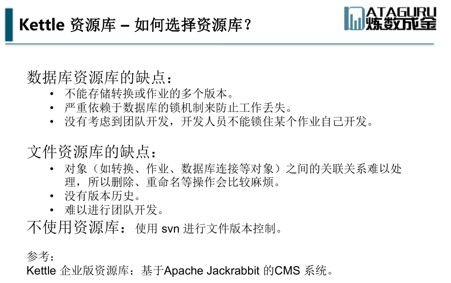 资源库是用来保存转换任务的,用户通过图形界面创建的的转换任务可以保存在资源库中。