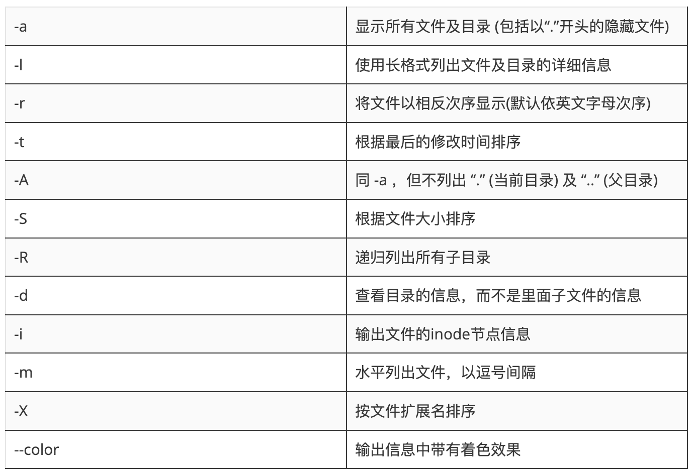 ls -lrth【-lrth 实际上是代表了 “-l -r -t -h” 这四个选项集合】