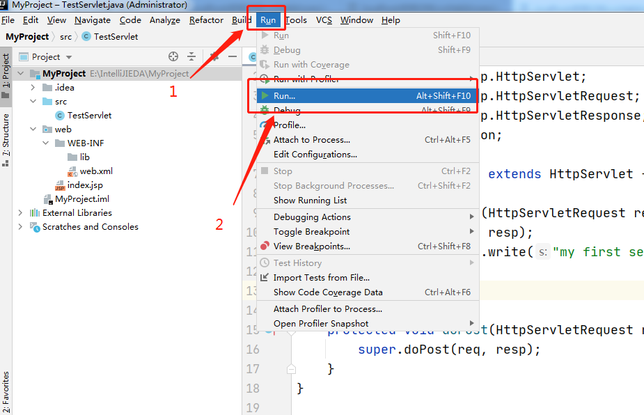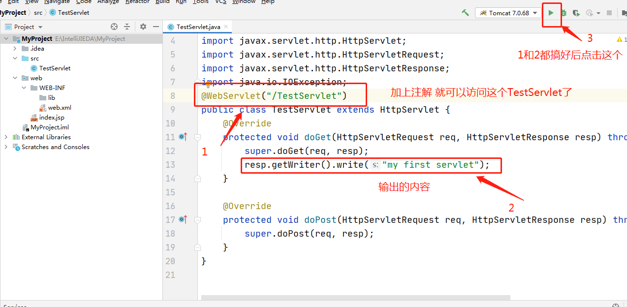 访问http://localhost:8080/MyProject/TestServlet 一直报404