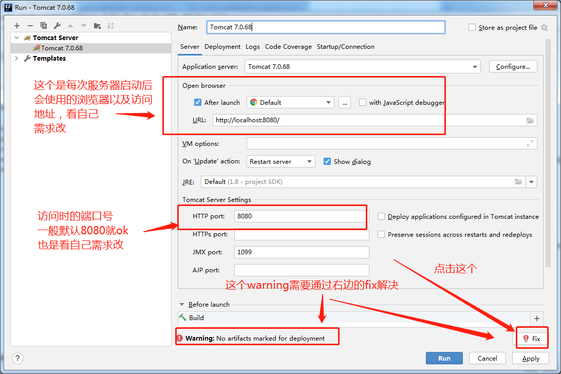 21.配置tomcat运行环境,这里需要注意一下右下角的fix,这个配置不好会出现404