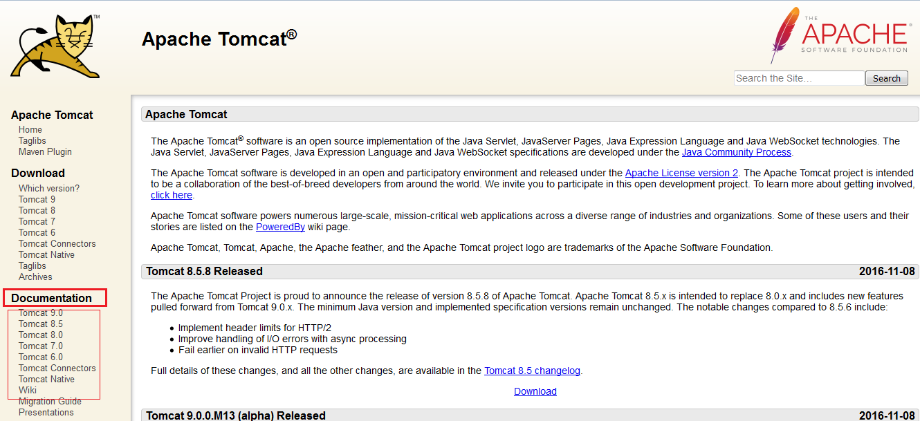 1. 打开官网Apache Tocat,选择DOWNLOAD下的Tocat你所需的版本。
