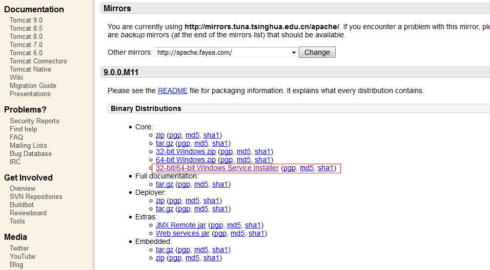2. 根据电脑的系统类型,选择Core下的安装包,zip或service Installer,建议选择service Installer(该方式会引导你安装),zip需要自己配置一些比较麻烦的配置。