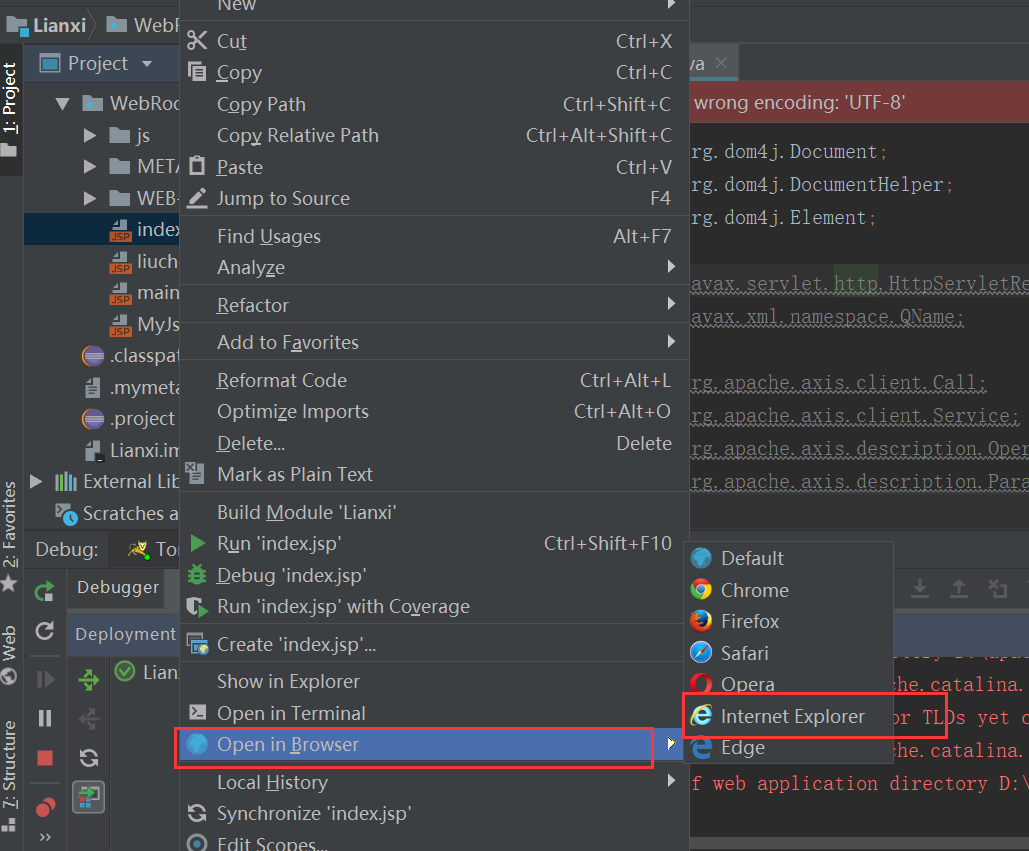 如果实在不清楚可以右键需要访问的jsp页面->Open in Browser选择你的浏览器,可以直接打开: