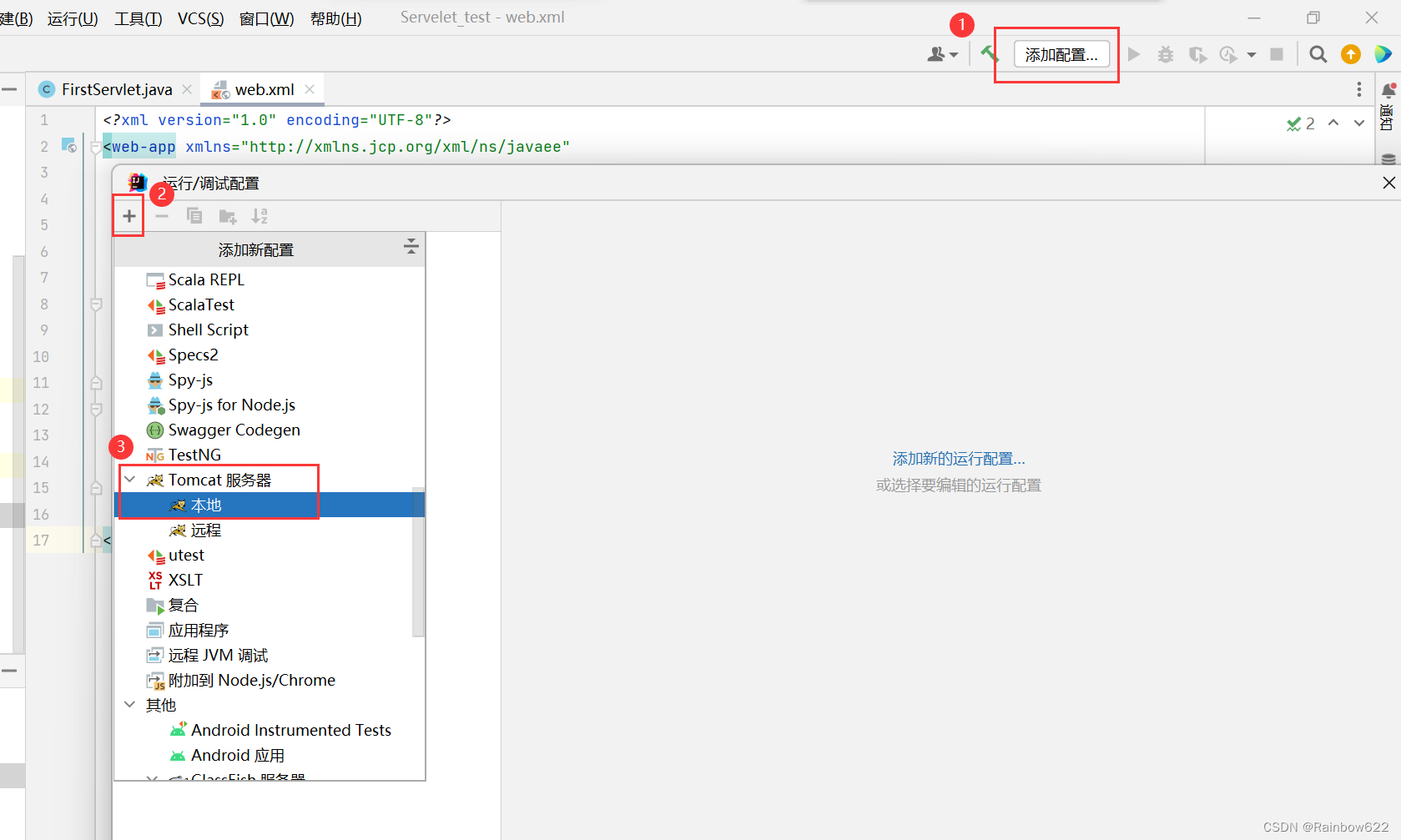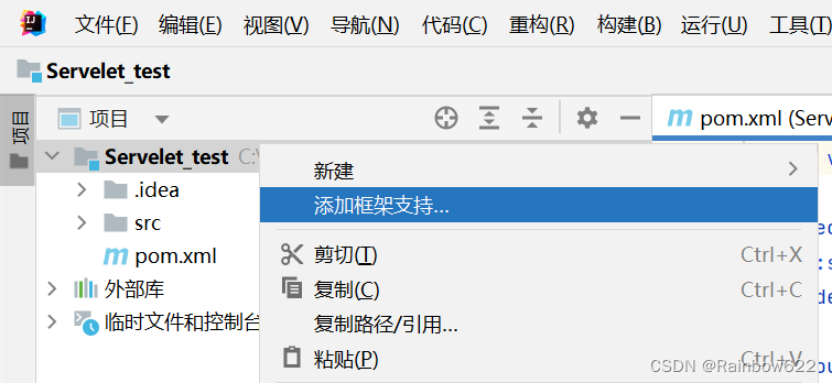 为新建的名为Servlet_test的项目添加框架支持(Add Framework Support)