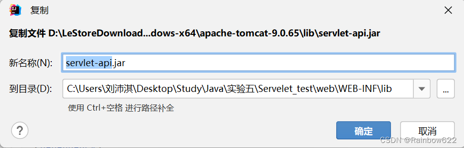 这里我们在自己的电脑上找到安装的Tomcat文件夹lib目录下的servlet-api.jar,并复制粘贴在java项目中的lib目录下: