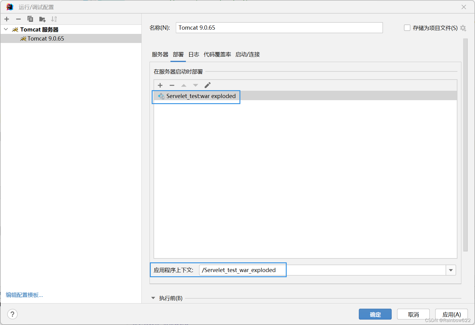 【注意,这里下方的“应用程序上下文”就是后续网页访问路径:http://localhost:8080/Servlet_test_war_exploded,也可以更改为别的名字】