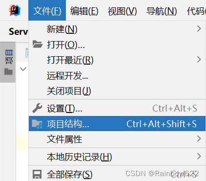 在最上方栏目中点击 文件 -> 项目结构(Project Structure)