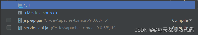 这个时候发现Servlet.class文件没有。怎么办?将CATALINA_HOME/lib/servlet-api.jar和jsp-api.jar这两个jar包添加到classpath当中(这里的classpath说的是IDEA的classpath)