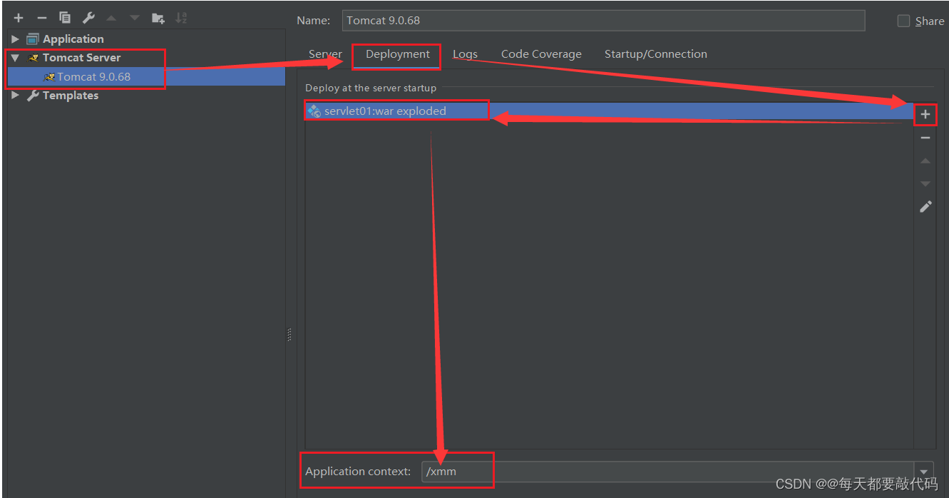 第十步:让IDEA工具去关联Tomcat服务器。关联的过程当中将webapp部署到Tomcat服务器当中。