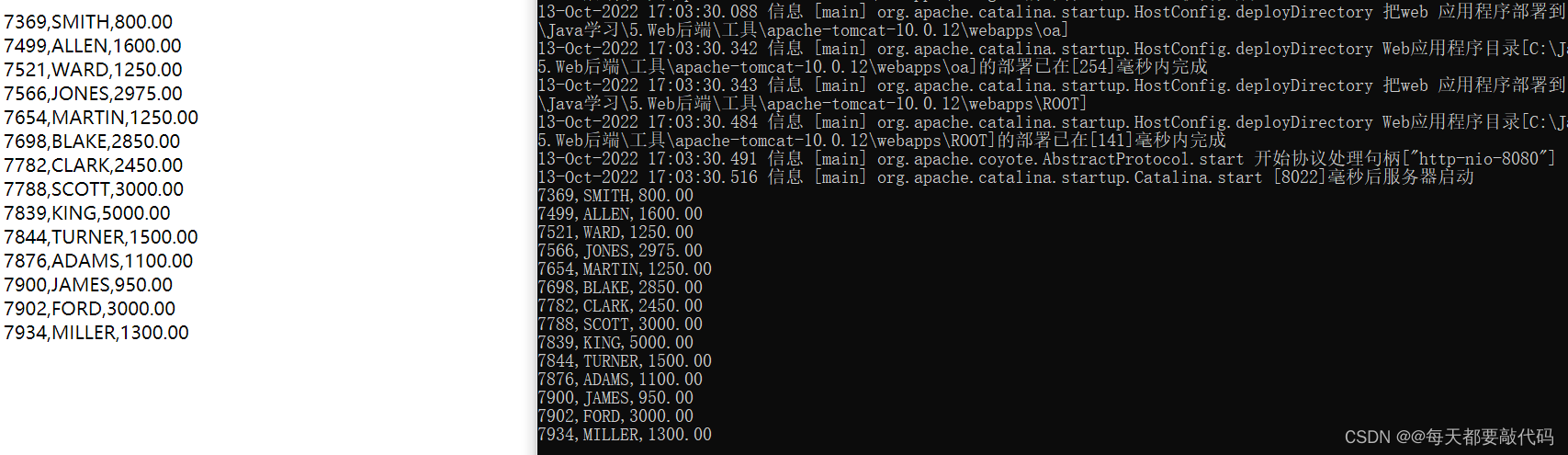 out.print("empno"+","+"ename"+","+"sal"+"<br>");
