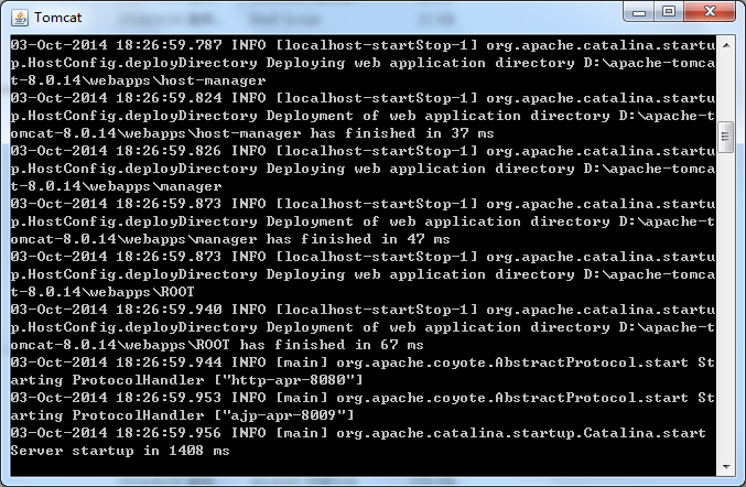 上方图片中,显示我的Tomcat的版本为:8.0.14。它的版本号是跟着JDK的版本走的,所以,建议JDK的版本为1.8。