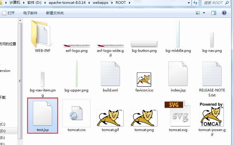 首先在D:apache-tomcat-8.0.14webappsROOT目录中新建一个jsp文件: