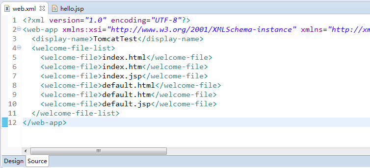 我们在hello.jsp中修改一下,将上方的第7行的标题改一下,并在第10行添加输出语句。最终代码如下: