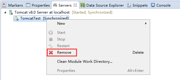 上图的红框部分表明,服务的部署是在eclipse里面(默认是放在工作空间里的.metadata文件夹下),而不是在Tomcat里面。我们来改一下,前提是工程并没有发布到Tomcat中去,那我们先把之前发布的版本删了吧(稍后重新发布):