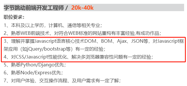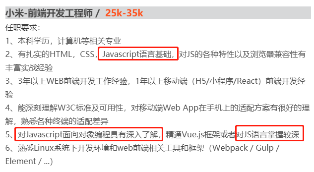 通过招聘网站可以看出,大厂普遍要求前端人才精通 JavaScript,其他各种高薪岗位也不乏 “理解并掌握 JavaScript” 等字眼。