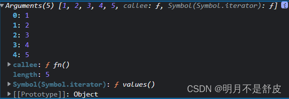 //注:arguments对象的Prototype是指向Object,这也说明了它是个类数组对象并非真正的数组。