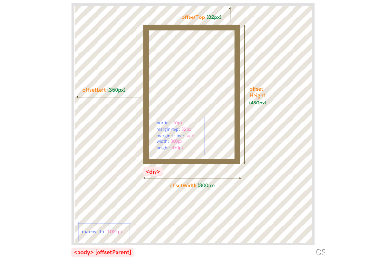 这些只读属性提供元素节点的完整外部大小。这是通过计算元素的垂直边框、填充和内容(包括可能存在的任何滚动条)的总大小来确定的。使用元素的水平边框、填充和内容高度以相同的方式计算。offsetWidthoffsetHeight