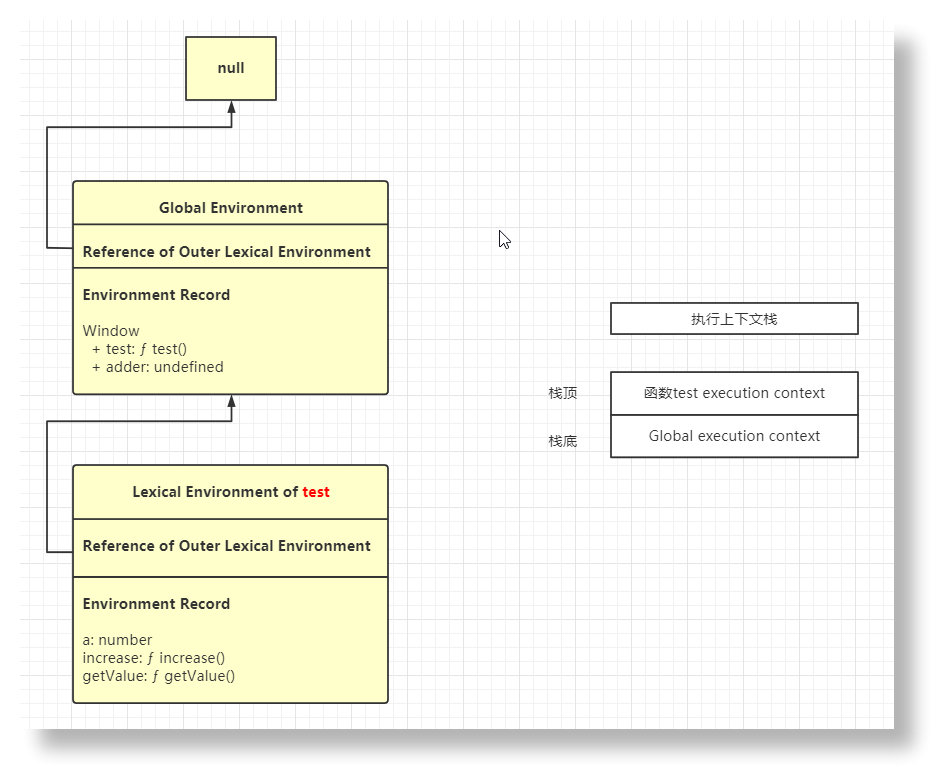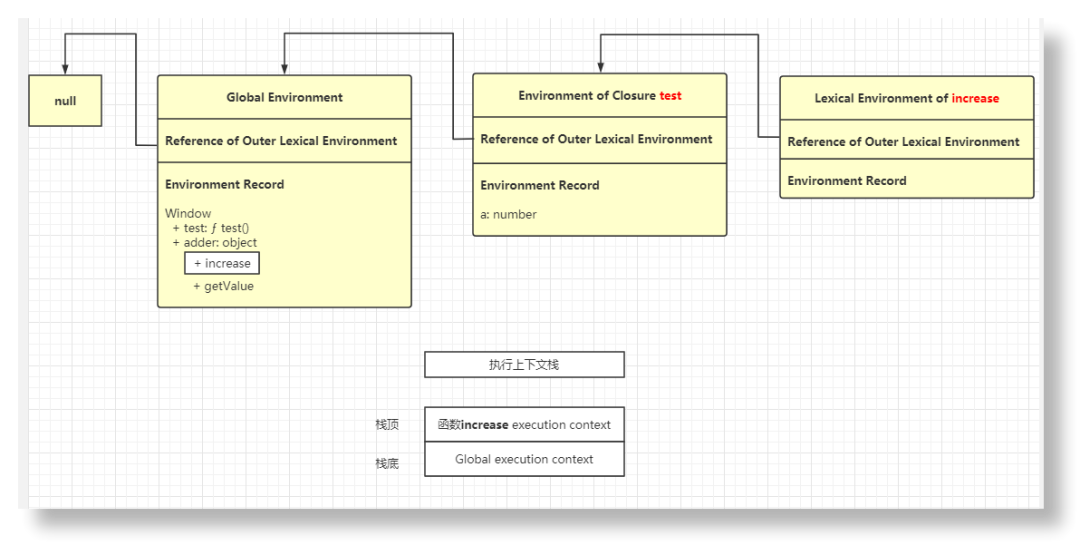 这里可能会有朋友提出一个疑问(我也这样问过我自己),为什么adder.increase()是在全局执行上下文中被调用,它执行时的外部词法环境仍然是test函数的localEnv的“阉割版”?