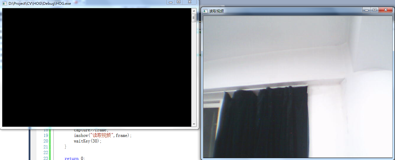 注:只需要讲上述代码中的VideoCapture capture("test.avi")改为VideoCapture capture(0)