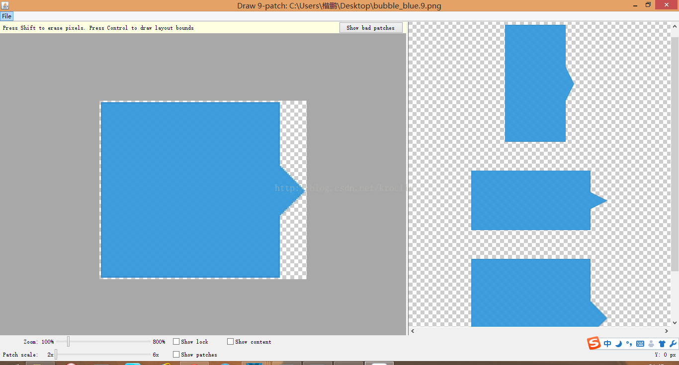 大家都知道,android中有一种特殊的图片,后缀格式一般是.9.png 。这种图片一般都是为了适应在使用过程中可以拉伸而不失真而引入的一种图片。本文中主要介绍9图的画法以及静态用法,所谓的静态用法就是在xml布局文件中的引用,而《关于android中的.9图(二)——利用java代码引用设置.9图》我将介绍如何用java代码实现9图的使用。