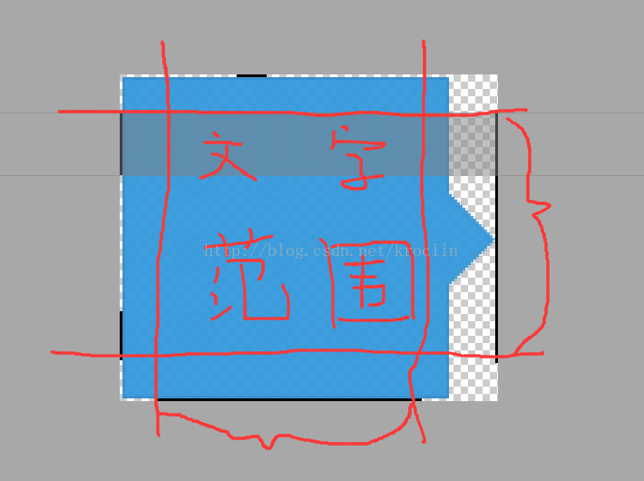 2、左边和上边是决定拉伸的部分,也就是说,上边你画的一个黑边和左边画的黑边部分都是可以被拉伸的,比如说上面那个黑线一下的那一条状阴影区域是可以向左右拉伸的,而左边那两部分决定了他们能够被上下拉伸,中间箭头部分没有画到,因此不会被拉伸。
