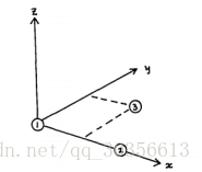 用1,2点确定x轴,1,2,3,点构成x-y平面,并以1点为原点在平面x-y内作12的垂直线为y轴,经过1点作x-y平面的垂线为z轴,构成左坐标系。其中新坐标系下:
