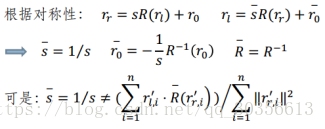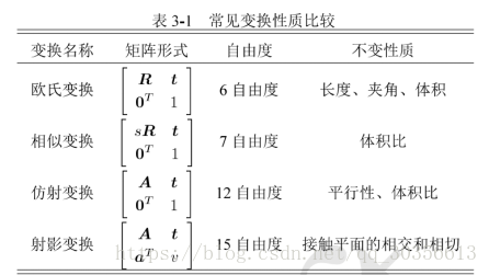 如表所示相似变换与欧式变换相比较多了尺度因子。因此对于一个相似变换矩阵可以分为三部分旋转矩阵R,平移矩阵t和初度因子s。