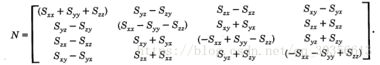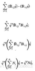 的最大值,我们需要将N进行特征分解,求得最大特征值对应的特征向量,则为该式中q的解。q为四元数表示的旋转,我们将四元数转换为旋转矩阵的形式: