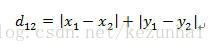 (1)二维平面两点a(x1,y1)与b(x2,y2)间的曼哈顿距离: