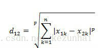 两个n维变量a(x11,x12,…,x1n)与b(x21,x22,…,x2n)间的闵可夫斯基距离定义为: