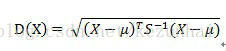 有M个样本向量X1~Xm,协方差矩阵记为S,均值记为向量μ,则其中样本向量X到u的马氏距离表示为: