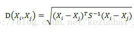 而其中向量Xi与Xj之间的马氏距离定义为: