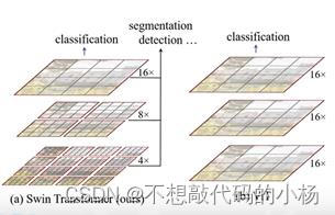 Swin Transformer与Vision Transformer的对比图如下所示: