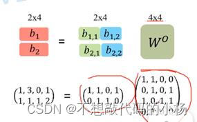 拼接的详细过程就是将所得参数下标数字一致的数据进行拼接,最后将拼接所得的矩阵与一个W0矩阵相乘进行融合,最终得到其过程示意图如下所示