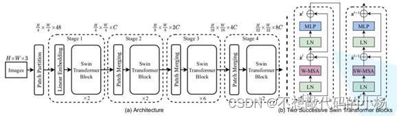 1)首先Swin Transformer所构建的特征图是具有层次结构的,随着特征层的不断加深,特征图的高和宽都是不断变小的。