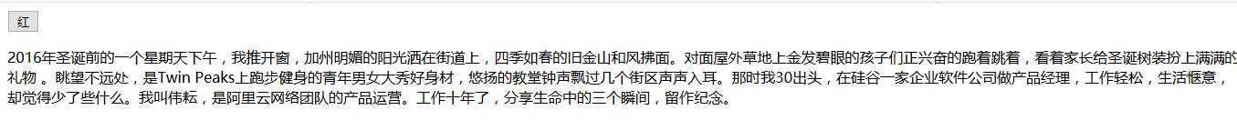 我现在要求,点击‘红’的按钮的时候,给下边的<p>标签设置一些样式,我可以用js代码来实现