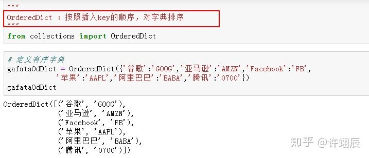 排序字典:Python默认的字典key是无序的,有时在处理数据时,需要按顺序进行处理,这时就需要用到排序字典。