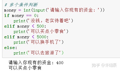 若为多条件,条件不同,需要执行的代码也不同,可以用elif。