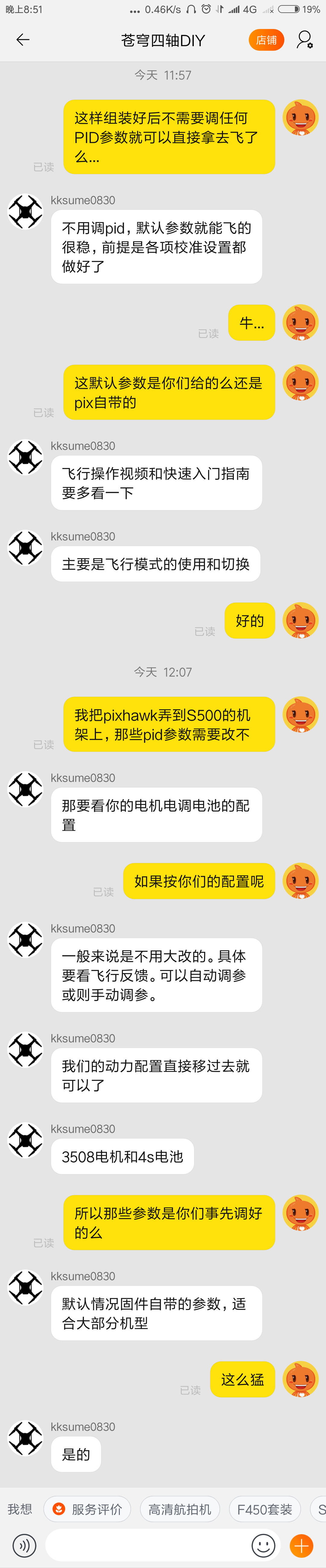 无名的飞控也是,还是要看具体的动力套装的!上面截图自无名的飞控使用说明书。苍穹四轴也是说动力配置。