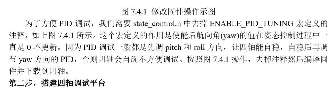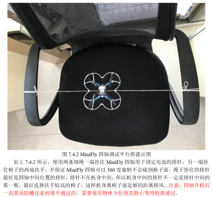 正点原子的开发指南也有教我们怎么调,我感觉还是正点原子想得周到,让我们能够用一根绳子就可以自己调参数了,着可能也是小型无人机得好处,大型无人机还得买调试架,所以还是小型无人机适合学习。