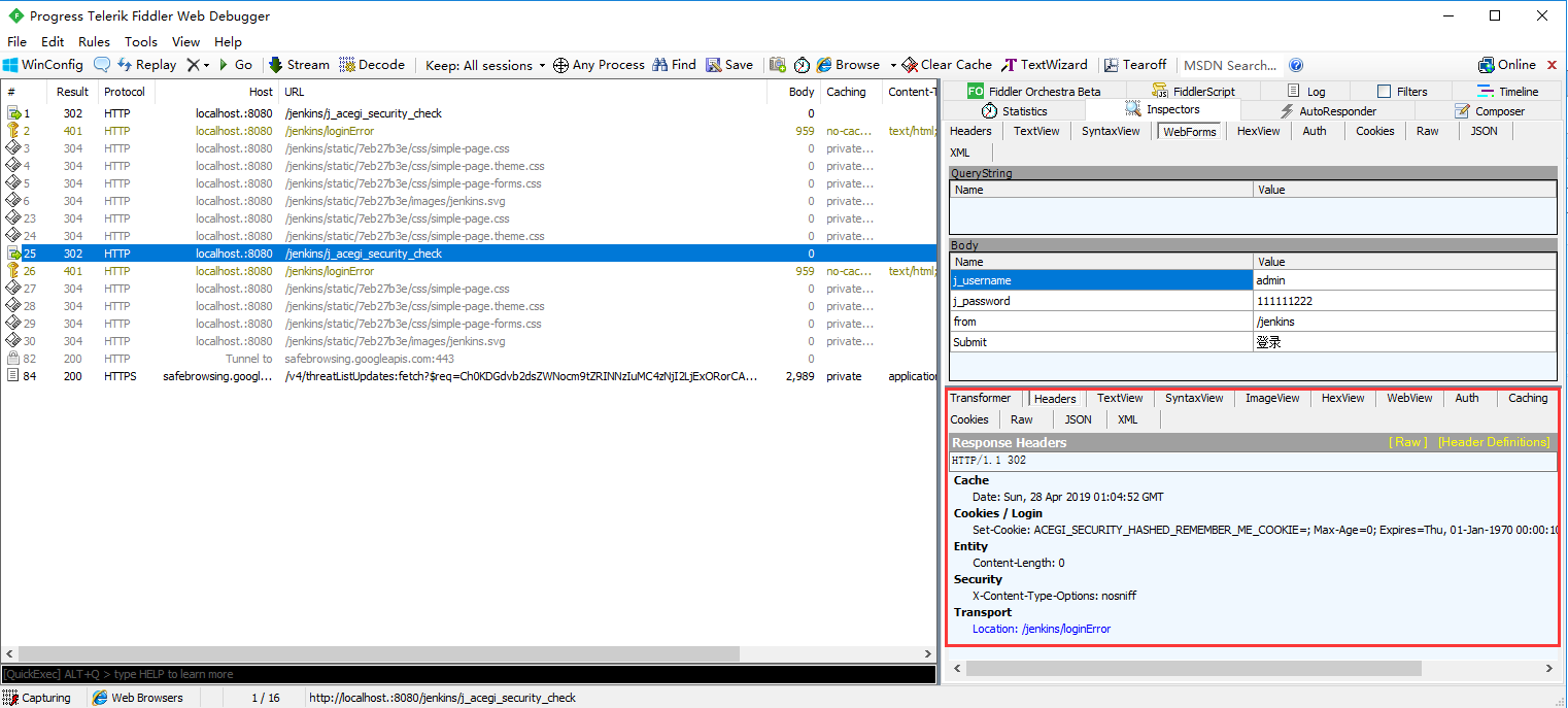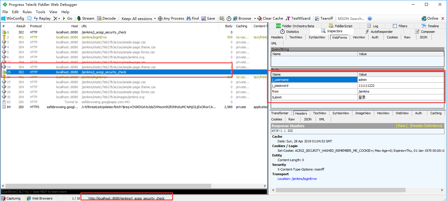 1、fiddler抓取本地部署的jenkins登录请求时,抓取不到,但是百度可以抓取到,解决方法: