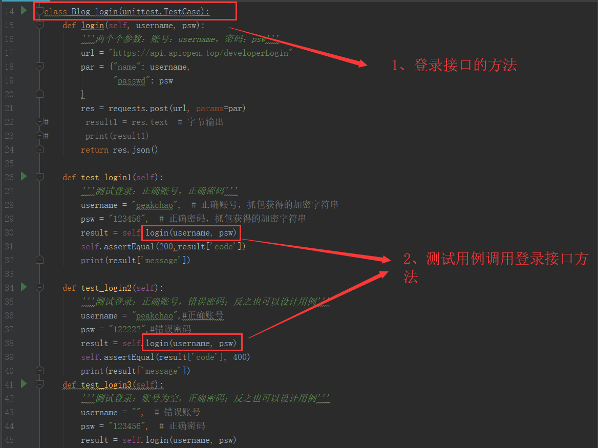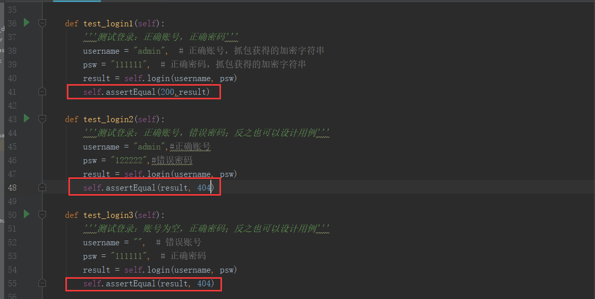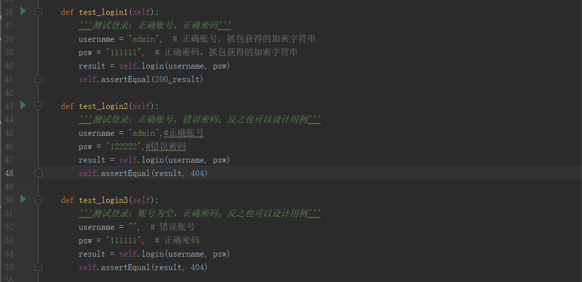 44 '''测试登录:正确账号,错误密码;反之也可以设计用例'''